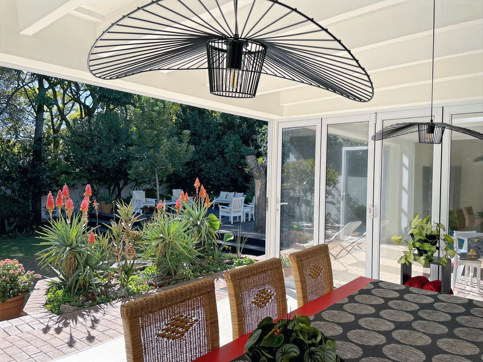The garden surrounding the house, with its swimming pool, wooden deck, terraces, and indoor sunroom, offers perfect spots to relax and socialise after a busy day.
